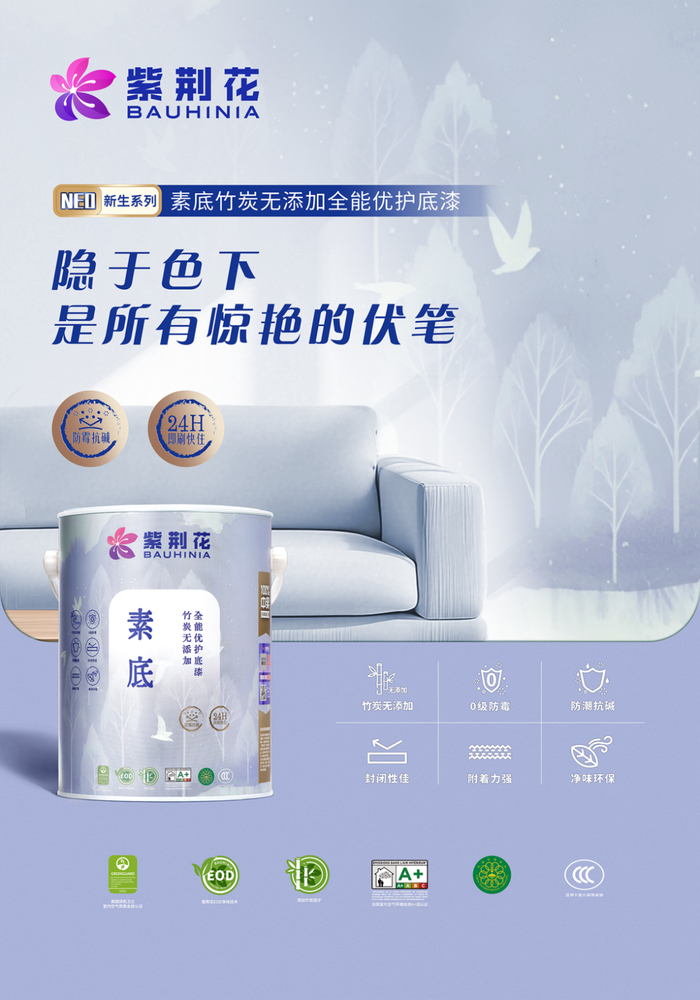 『紫荆花』素底竹炭无添加全能优护底漆,“素”是本色与原真,“底”是根基与起点。本品专为守护墙面基底而生,采用“竹炭无添加”配方,从源头杜绝有害添加,实现超净味环保。其卓越的0级防霉与防潮抗碱性能,能有效阻隔基层湿气与碱侵蚀,避免墙面泛碱、发霉。同时,具有超强附着力,能为面漆提供坚固均匀的附着基底,确保饰面层历久弥新,给予墙面完美保护。